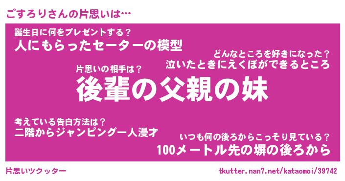 | 意味不明あだ名 | 『ペロリンごすろり』『永久保存ごすろり』 |