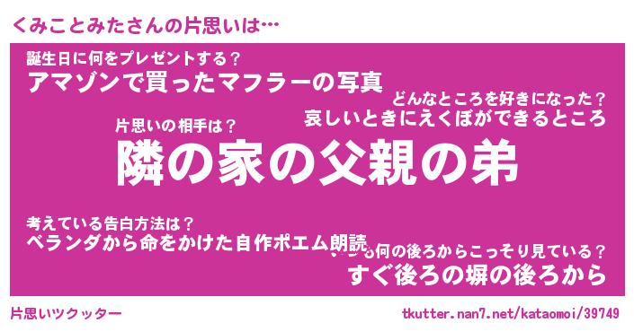 | 胡散臭い通販商品みたいなあだ名 | 『必ず成功するブレスレット…その名も「くみことみた」』 |