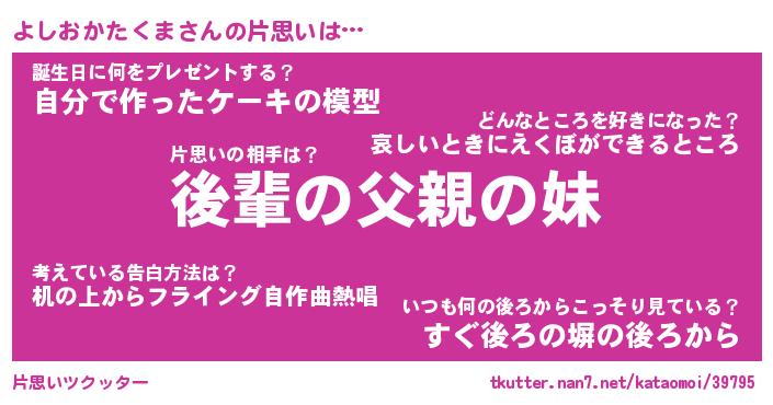 | 女子向けラノベタイトル風あだ名 | 『誰かこのよしおかたくまを説明してください! ~契約から始まるウェディング~』 |