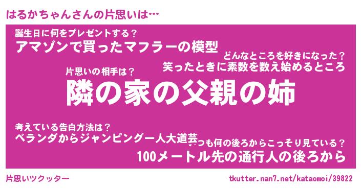 | 男性向けラノベタイトル風あだ名 | 『はるかちゃんの憂鬱』 |