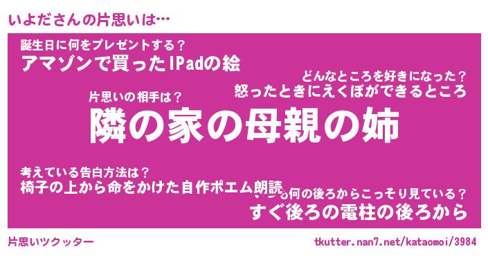 | ピコ太郎風あだ名 | 『イコ次郎』『ピイ六郎』『イヨ三郎』 |