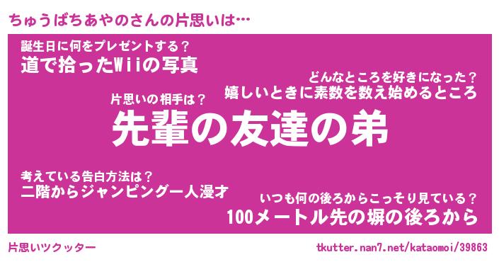 | ヘコむあだ名 | 『ちゅっふぃ~』『豆乳』『ちゅっぺ』 |