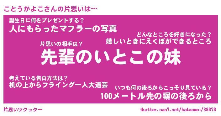 | ヘコむあだ名 | 『こともー』『酢こんぶ』『ことお』 |