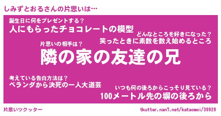 | 男性向けラノベタイトル風あだ名 | 『しみずとおるの憂鬱』 |