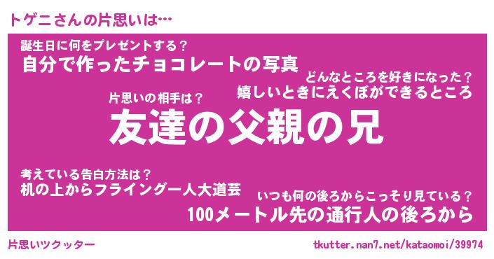 | 恥ずかしいあだ名 | 『プリティートゲニ』『トゲっちょ』 |