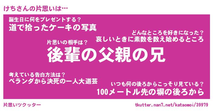 | ヘコむあだ名 | 『けちふぇ~』『なまこ酢』『けちを』 |
