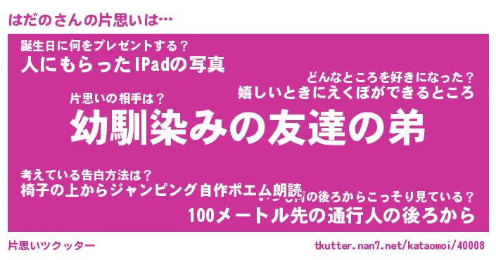| ポケモン風あだ名 | 『ハダチュウ』『ハダノダネ』 |