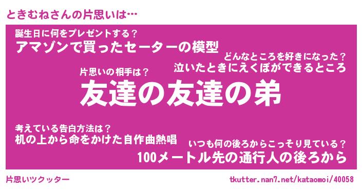 | ヘコむあだ名 | 『ときっふぃ~』『なまこ酢』 |