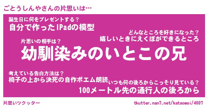 | 男性向けラノベタイトル風あだ名 | 『ごとうしんやの憂鬱』 |