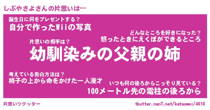 | 胡散臭い通販商品みたいなあだ名 | 『必ず成功する水晶球…その名も「しぶやさよ」』 |