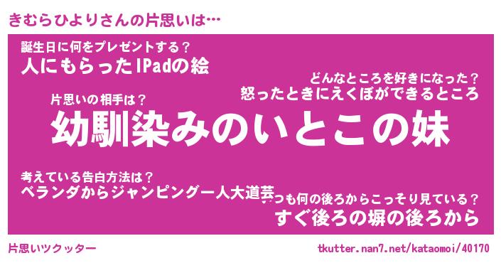 | 男性向けラノベタイトル風あだ名 | 『きむらひよりの憂鬱』 |
