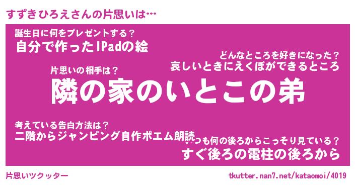 | ヒーロー風カッコイイあだ名 | 『スーパースズキヒロエ』『幻影騎士スズ』 |