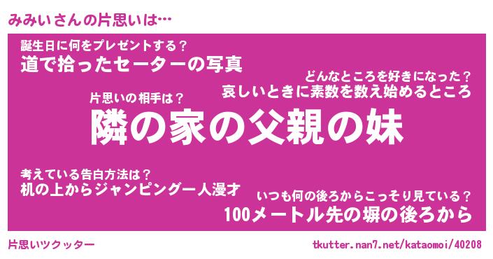 | ヘコむあだ名 | 『みみにゅー』『豆乳』『みみっぺ』 |