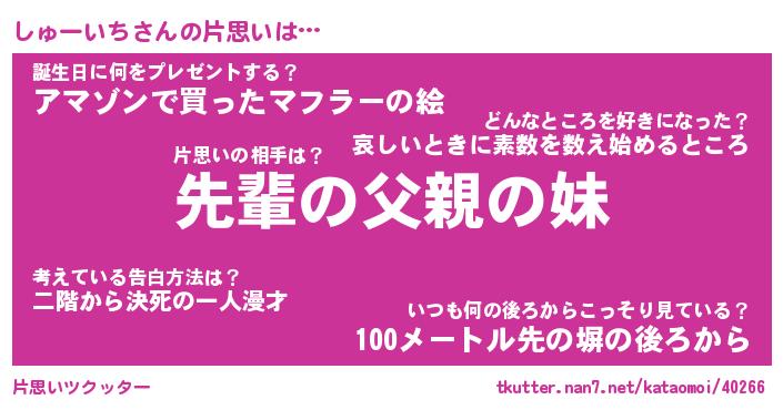 | 胡散臭い通販商品みたいなあだ名 | 『モテモテ間違いなし水晶球…その名も「しゅーいち」』 |