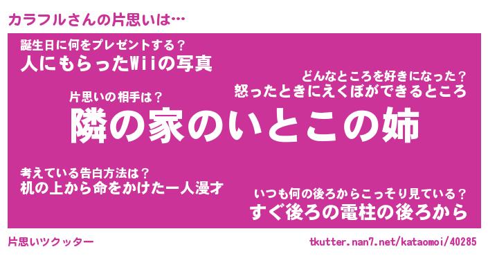| ファンタジー風あだ名 | 『カラフェル』『エターナルカラフルー』 |