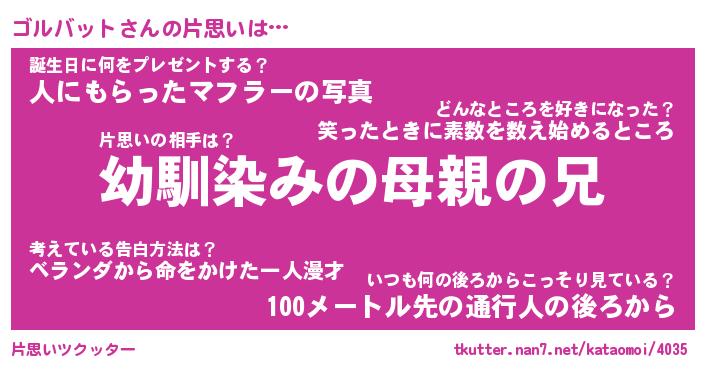 | 女子向けラノベタイトル風あだ名 | 『(仮)ゴルバットのやんごとなき事情』 |