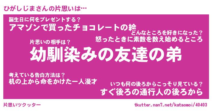 | 男性向けラノベタイトル風あだ名 | 『ひがしじまの憂鬱』 |