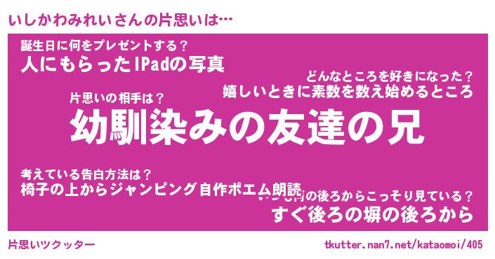 | 男性向けラノベタイトル風あだ名 | 『いしかわみれいの憂鬱』 |