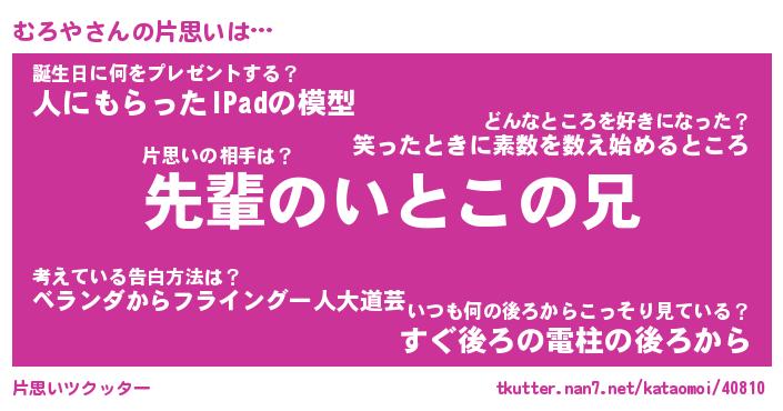 | ヘコむあだ名 | 『むろにゅー』『なまこ酢』『むろを』 |