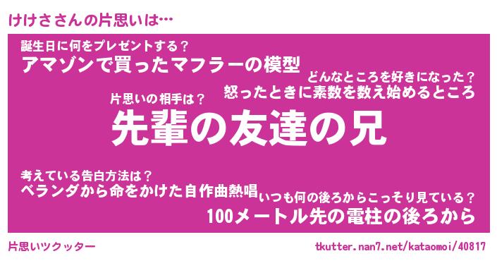 | ヘコむあだ名 | 『けけっふぃ~』『豆乳』『けけお』 |