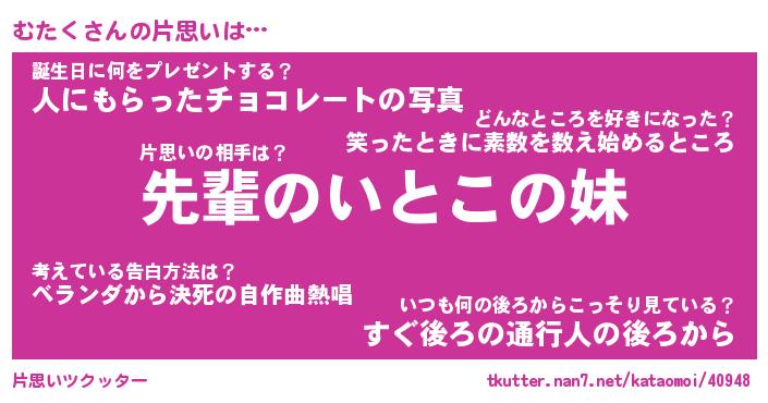 | ヘコむあだ名 | 『むたもー』『酢こんぶ』『むたっ子』 |