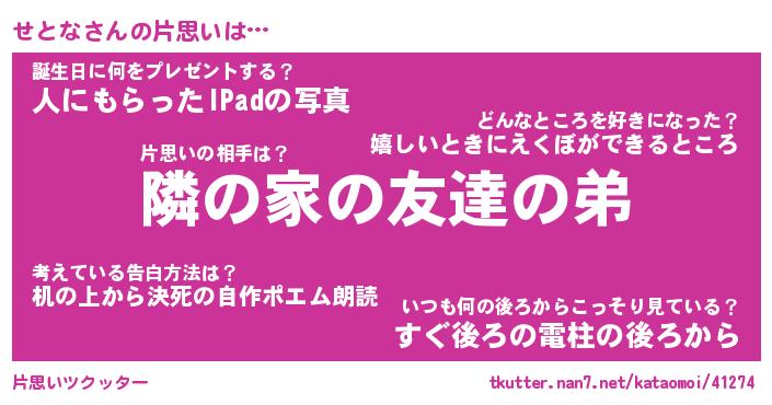 | 意味不明あだ名 | 『ペロリンせとな』『せとなフォーエバー』 |