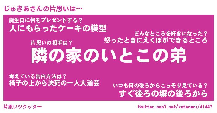| 胡散臭い通販商品みたいなあだ名 | 『必ず成功する霊験あらたかなお札…その名も「じゅきあ」』 |