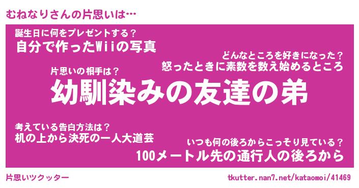 | 男性向けラノベタイトル風あだ名 | 『むねなりの憂鬱』 |