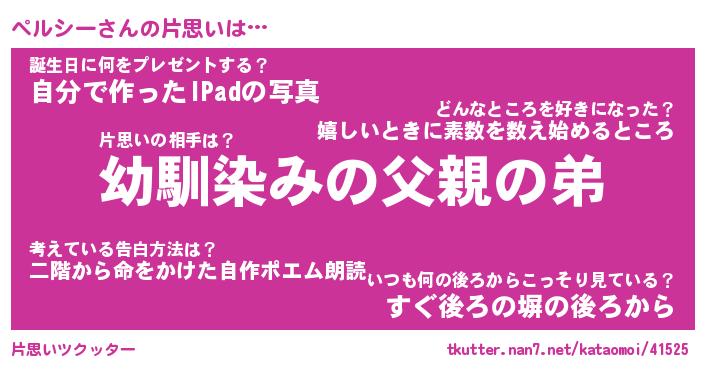 | ヘコむあだ名 | 『ペルにゅー』『豆乳』『ペルを』 |