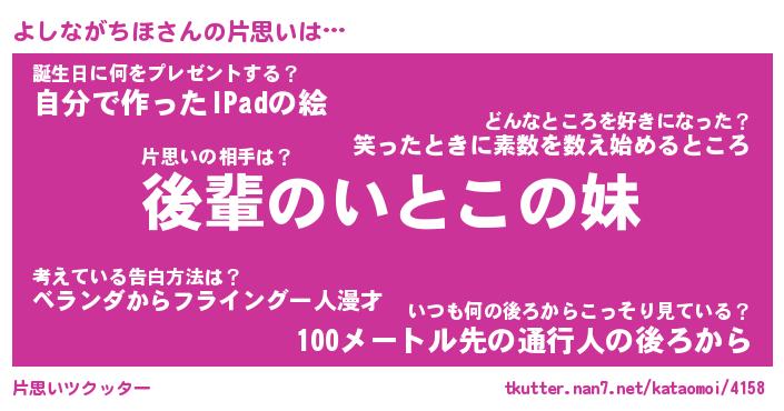 | ヘコむあだ名 | 『よしにゅー』『つくし』『よしっぺ』 |