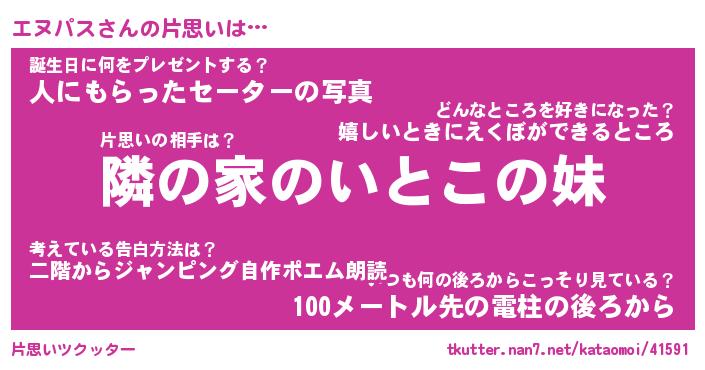 | 男性向けラノベタイトル風あだ名 | 『エヌパスの憂鬱』 |