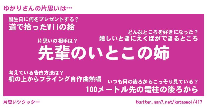 | 胡散臭い通販商品みたいなあだ名 | 『モテモテ間違いなし霊験あらたかなお札…その名も「ゆかり」』 |