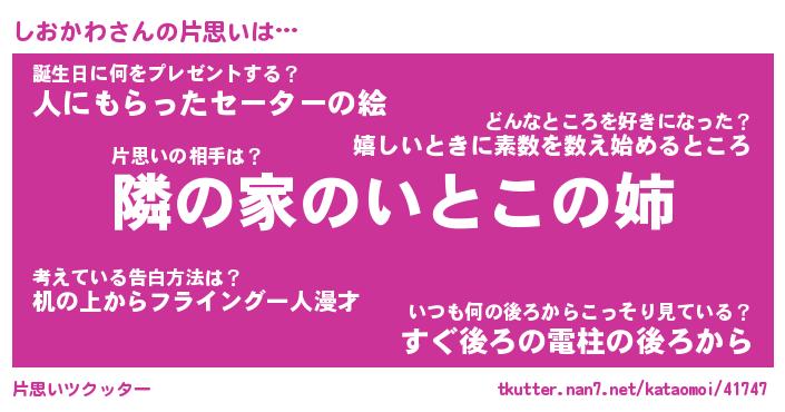 | ファンタジー風あだ名 | 『シオフェル』『エターナルシオカワー』 |