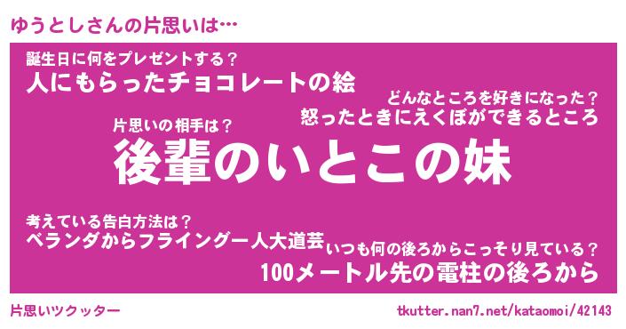 | 意味不明あだ名 | 『ペロリンゆうとし』『永久保存ゆうとし』 |