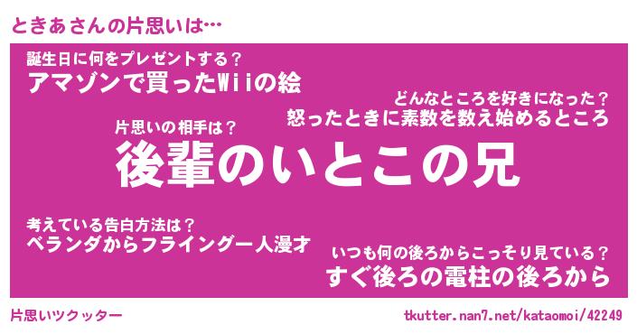 | 意味不明あだ名 | 『ペロリンときあ』『ときあフォーエバー』 |
