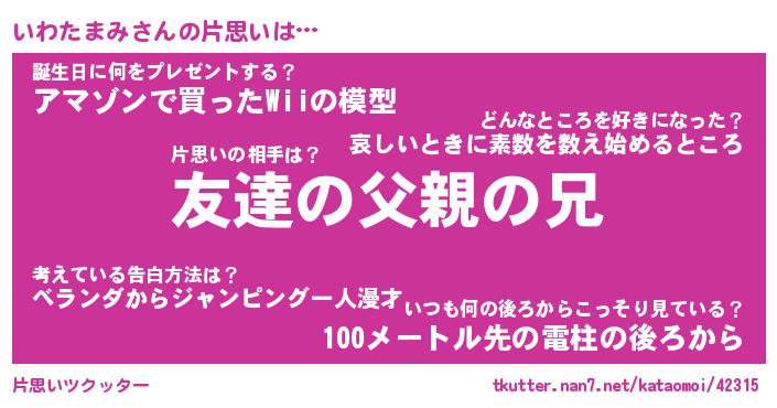 | ヒーロー風カッコイイあだ名 | 『スーパーイワタマミ』『黄金騎士イワ』 |