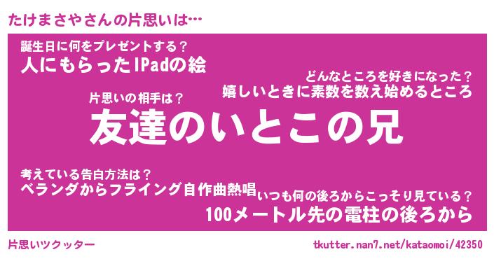 | ヘコむあだ名 | 『たけもー』『なまこ酢』 |