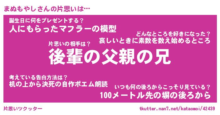 | ヘコむあだ名 | 『まぬにゅー』『なまこ酢』 |