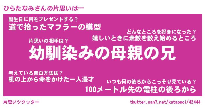 | ヘコむあだ名 | 『ひらにー』『なまこ酢』『ひらっ子』 |