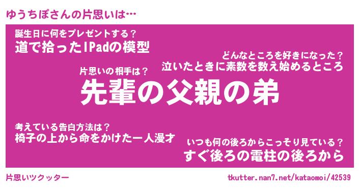 | 意味不明あだ名 | 『ペロリンゆうちぽ』『永久保存ゆうちぽ』 |