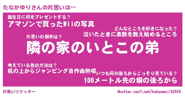 | ヘコむあだ名 | 『たなにゅー』『なまこ酢』 |