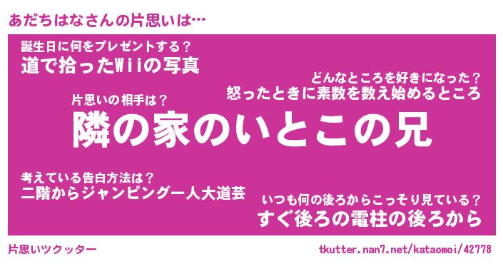 | ヘコむあだ名 | 『あだにゅー』『豆乳』『あだを』 |