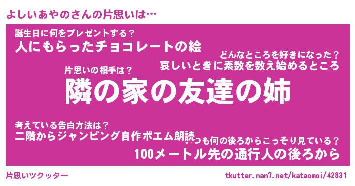 | 胡散臭い通販商品みたいなあだ名 | 『必ず成功する霊験あらたかなお札…その名も「よしいあやの」』 |