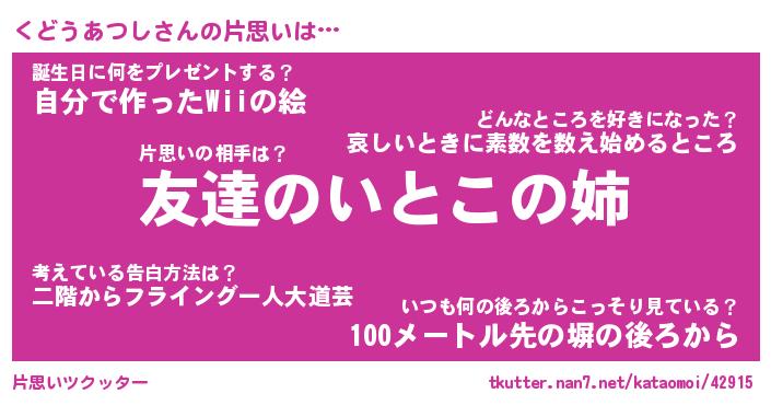 | ヒーロー風カッコイイあだ名 | 『スーパークドウアツシ』『幻影騎士クド』 |
