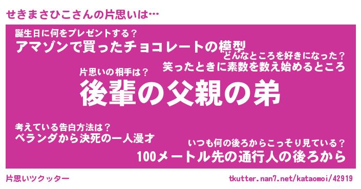 | ヒーロー風カッコイイあだ名 | 『スーパーセキマサヒコ』『幻影騎士セキ』 |
