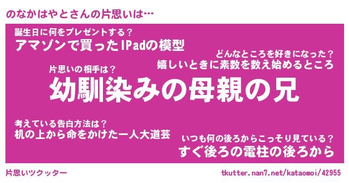 | 女子向けラノベタイトル風あだ名 | 『(仮)のなかはやとのやんごとなき事情』 |