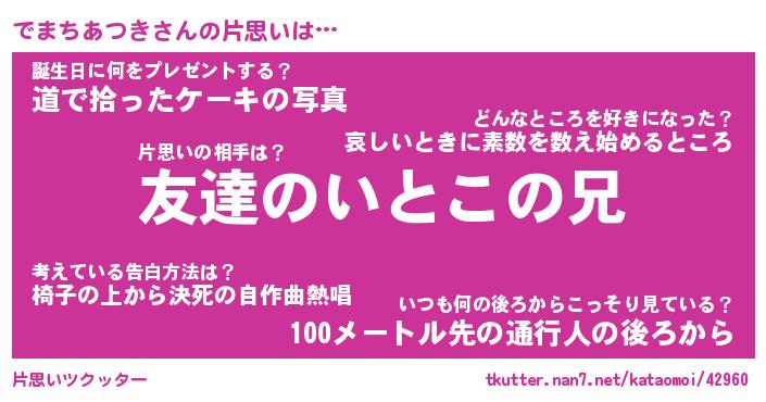 | ヘコむあだ名 | 『でまもー』『豆乳』『でまを』 |