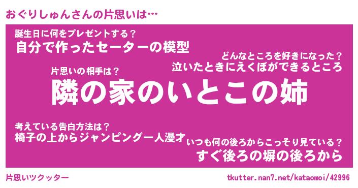 | 男性向けラノベタイトル風あだ名 | 『おぐりしゅんの憂鬱』 |