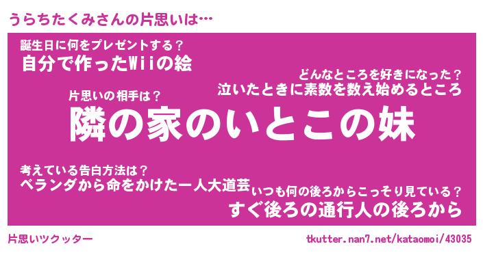 | ヘコむあだ名 | 『うらもー』『つくし』『うらぷりん』 |