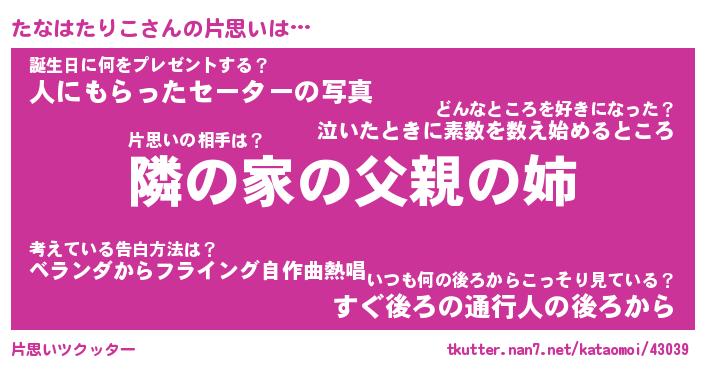 | 胡散臭い通販商品みたいなあだ名 | 『必ず成功する水晶球…その名も「たなはたりこ」』 |
